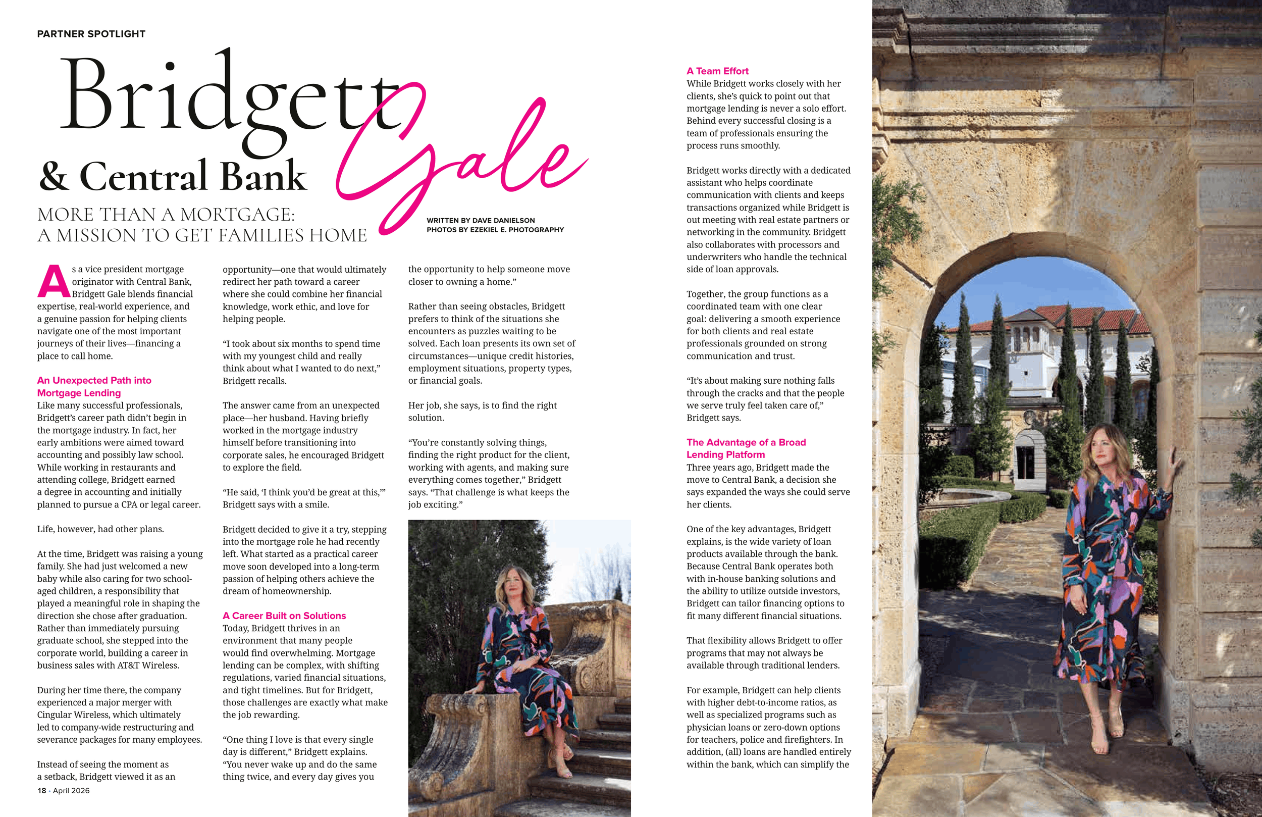 As a vice president mortgage originator with Central Bank, Bridgett Gale blends financial expertise, real-world experience, and a genuine passion for helping clients navigate one of the most important journeys of their lives—financing a place to call home.