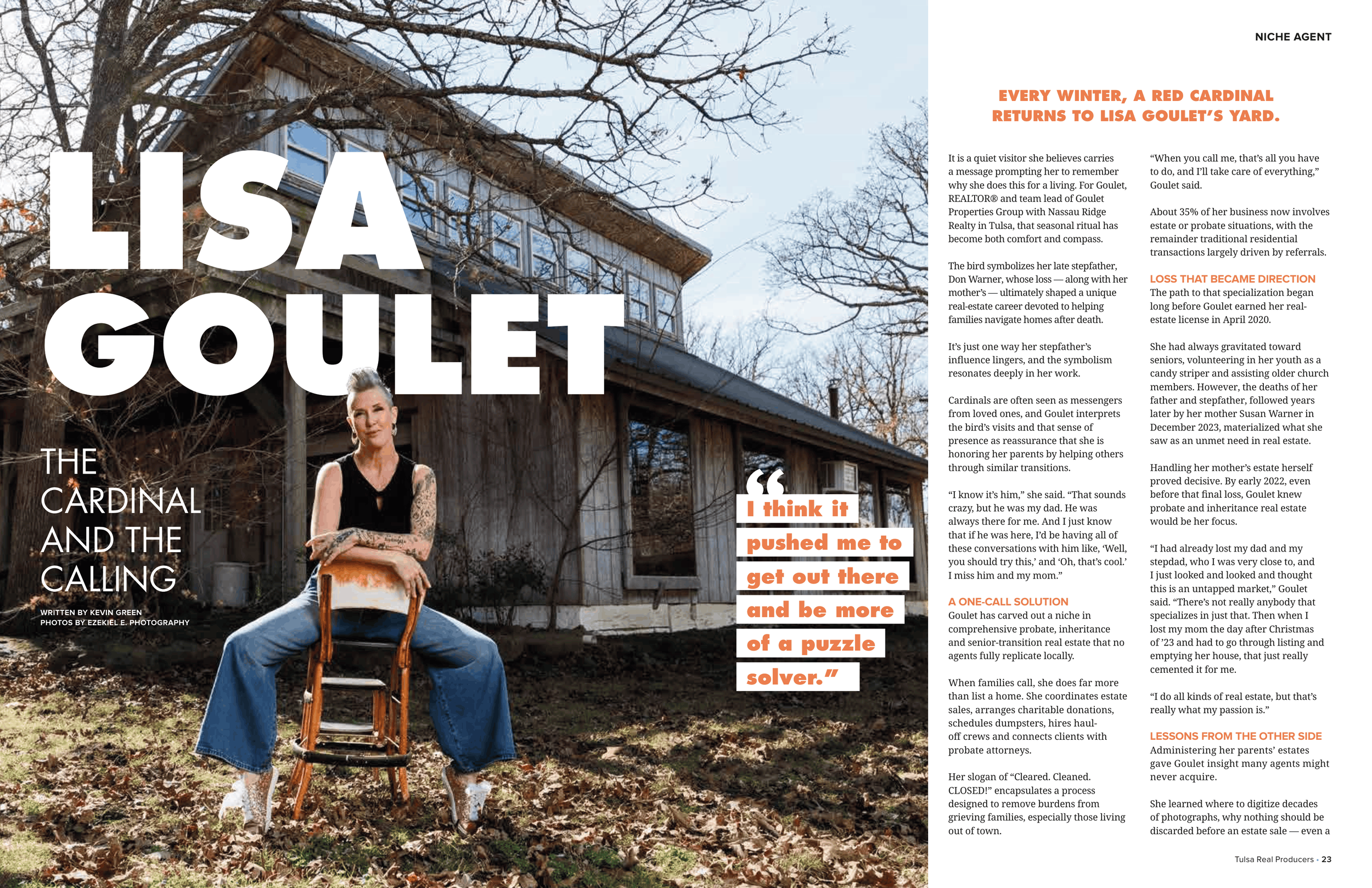 It is a quiet visitor she believes carries a message prompting her to remember why she does this for a living. For Goulet, REALTOR® and team lead of Goulet Properties Group with Nassau Ridge Realty in Tulsa, that seasonal ritual has become both comfort and compass.